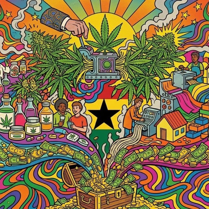 Вся цепочка строго для граждан Ганы, иностранцы могут зайти только через совместные компании с долей ганцев от 50%. Экономический потенциал огромный. По прогнозам отрасль может приносить стране до $1 млрд ежегодно, а один гектар даёт фермеру от $10 тыс. дохода. Тропический климат позволяет собирать до 4 урожаев в год. Гана вполне может стать серьёзным игроком мирового рынка хемпа, который оценивается в $24 млрд к 2033 году.