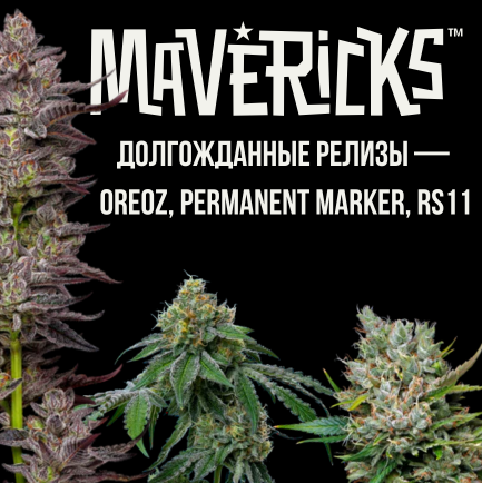 В преддверии ежегодного повода 4.20 Mavericks Genetics радует долгожданными фотопериодными генетиками! Oreoz, Permanent Marker и RS11 — индика-доминантные гибриды с уникальными характеристиками и тщательно подобранными генетическими линиями. Встречайте: Oreoz Feminized Lineage: Cookies & Cream x Secret Weapon THC: 25% ± 2% 70% Indica/30% Sativa Время цветения: 8-9 недель Аромат: табак, дизельное топливо, ваниль Урожай в аутдоре: 700 г Урожайность в индоре: 650 г/м² Общее содержание терпенов: 3,30% Сорт Oreoz очаровывает поразительным контрастом глубоких зеленых и насыщенных фиолетовых оттенков, придающих его соцветиям неповторимый и запоминающийся вид. Соцветия очень плотные и щедро покрыты трихомами. Его аромат изысканный и сложный, раскрывающийся слоями табака, дизельного топлива и нежной ванили. Это характерное сочетание терпенов добавляет глубины и индивидуальности, делая Oreoz мгновенно узнаваемым. Настоящий чемпион в мире каннабиса, сорт Oreoz завоевал более 20 национальных кубков каннабиса, закрепив за собой статус одной из лучших генетических линий отрасли. Известный своим обильным образованием трихом, сорт Oreoz — исключительный выбор для производства смолы и экстрактов. Этот сорт представляет собой идеальный баланс привлекательного внешнего вида, сложной ароматической структуры и выдающейся продуктивности — элитная генетика для ценителей. Permanent Marker Feminized Lineage: Biscotti x Jealousy x Sherb Bx THC: 27% ± 2% 70% Indica/30% Sativa Время цветения: 8-9 недель Аромат: цветочный, газовый Урожай в аутдоре: 850 г Урожайность в индоре: 550 г/м² Общее содержание терпенов: 3,20% Permanent Marker — гибридный сорт, известный своим уникальным ароматом, напоминающим запах перманентного маркера. Этот сорт сочетает в себе генетику Biscotti и Jealousy, скрещенных с Sherb Bx, что дает к высокое содержание ТГК — 25-27%. Визуально Permanent Marker отличается пышными зелеными соцветиями, покрытыми плотным слоем трихом. Аромат представляет собой характерную смесь, имитирующую запах перманентного маркера. Этот сорт обеспечивает сбалансированный эффект, вызывая эйфорический прилив, за которым следует глубокое телесное расслабление. Подходит как для рекреационного, так и для медицинского использования. Permanent Marker также отличается высокой урожайностью, достигая до 850 - 1000 граммов с растения на открытом воздухе и до 600 граммов с квадратного метра в помещении. Это выдающийся сорт каннабиса, сочетающий в себе высокую мощность, уникальный аромат и высокий потенциал урожайности. RS11 Feminized Lineage: Pink Guava x OZ Kush THC: 32% ± 2% 70% Indica/30% Sativa Время цветения: 8-9 недель Аромат: сосна, земля и топливо Урожай в аутдоре: 800 г Урожайность в индоре: 600 г/м² Общее содержание терпенов: 2,80% Внешний вид RS11 поражает завораживающим сочетанием белых и зеленых оттенков в соцветиях, создавая неповторимый образ. Соцветия RS11 известны своей плотностью. Аромат RS11 представляет собой смесь сосны, земли и топлива. Этот сорт получил признание, выиграв 11 национальных конкурсов каннабиса. Кроме того, RS11 — продуктивный сорт, дающий солидный урожай до 800 граммов с растения при выращивании на открытом воздухе и 600 граммов с квадратного метра при выращивании в помещении. RS11 — это сорт, который выделяется своей мощностью, впечатляющим внешним видом и исключительным ароматическим профилем. Купить семена Mavericks Genetics, в том числе новые релизы: • Cannado • Rastarasha • SOVOC • FarmerPlace • источник: mavericksgenetics